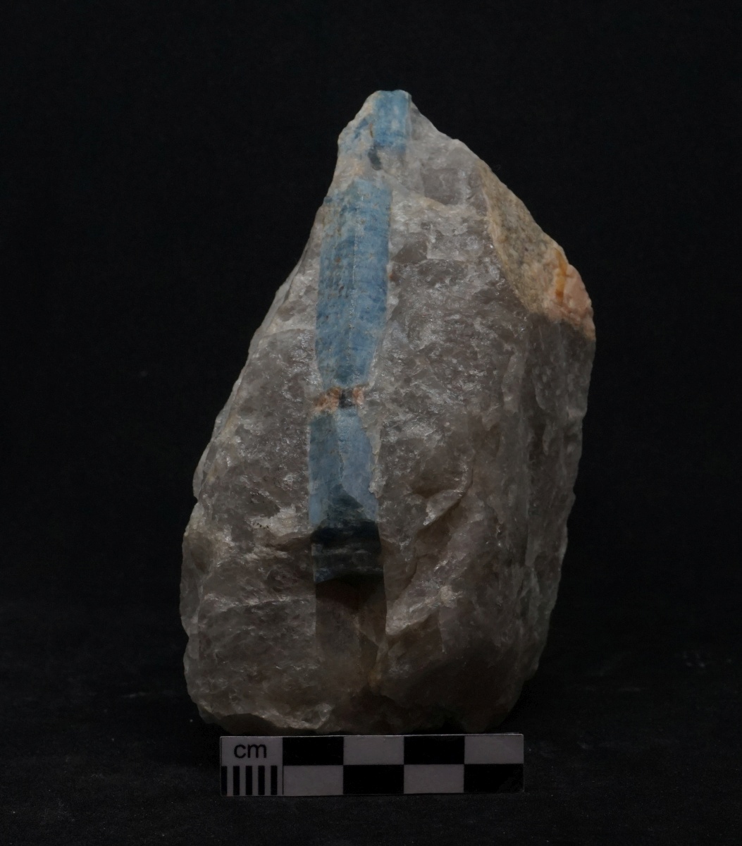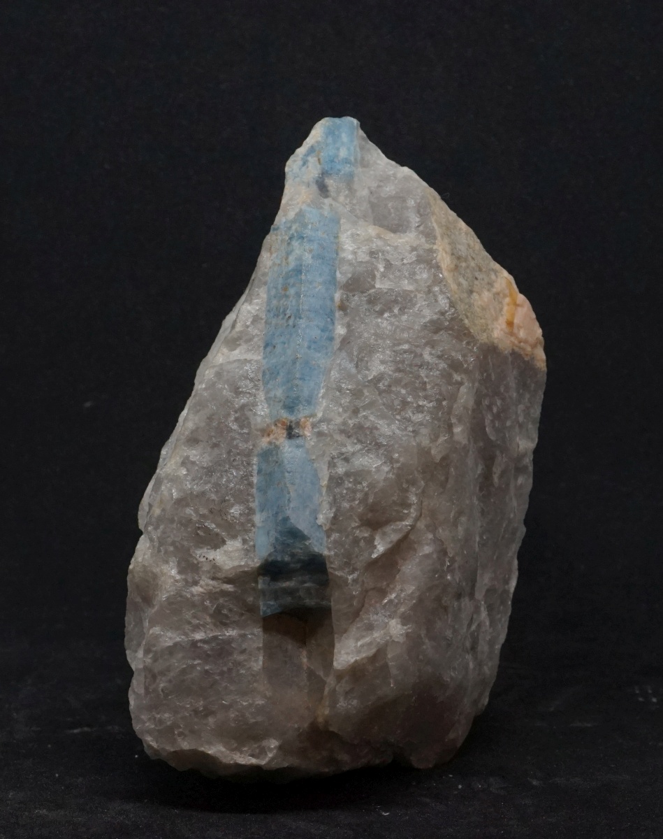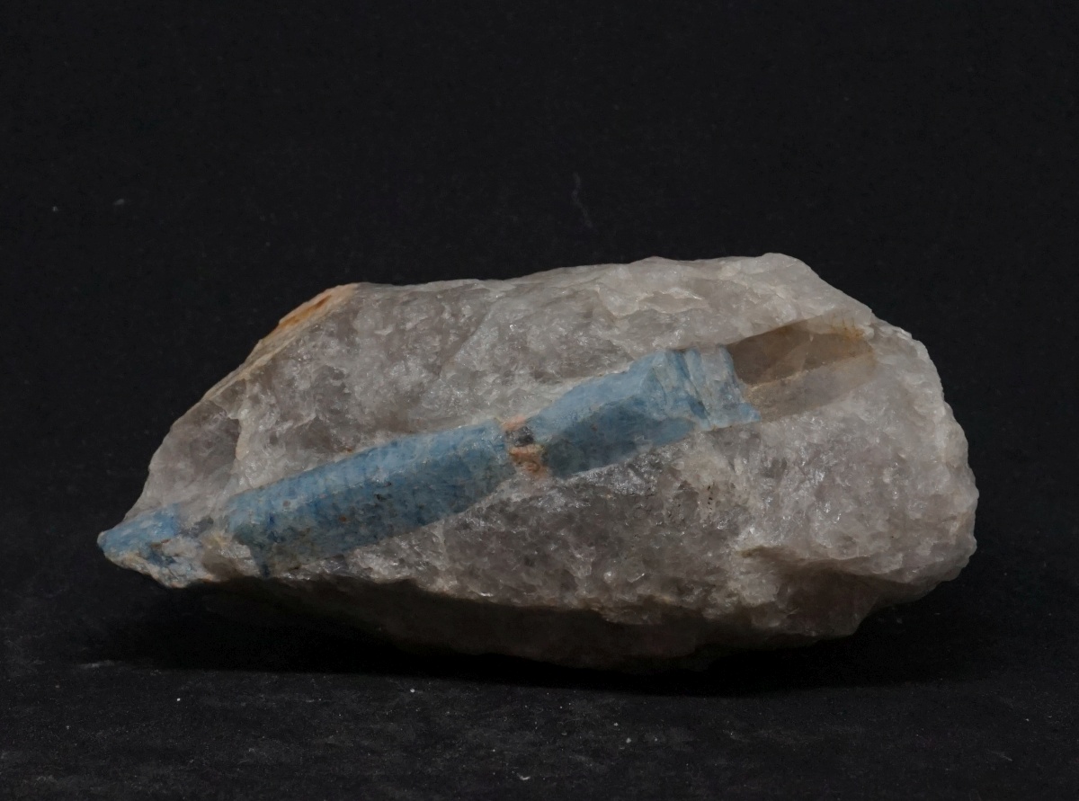 Beeindruckendes Handstück mit einem über 1 cm dicken und fast 9 cm langen Aquamarinkristall in Quarz. Aus den Edelsteinpegmatiten in Minas Gerais, Brasilien