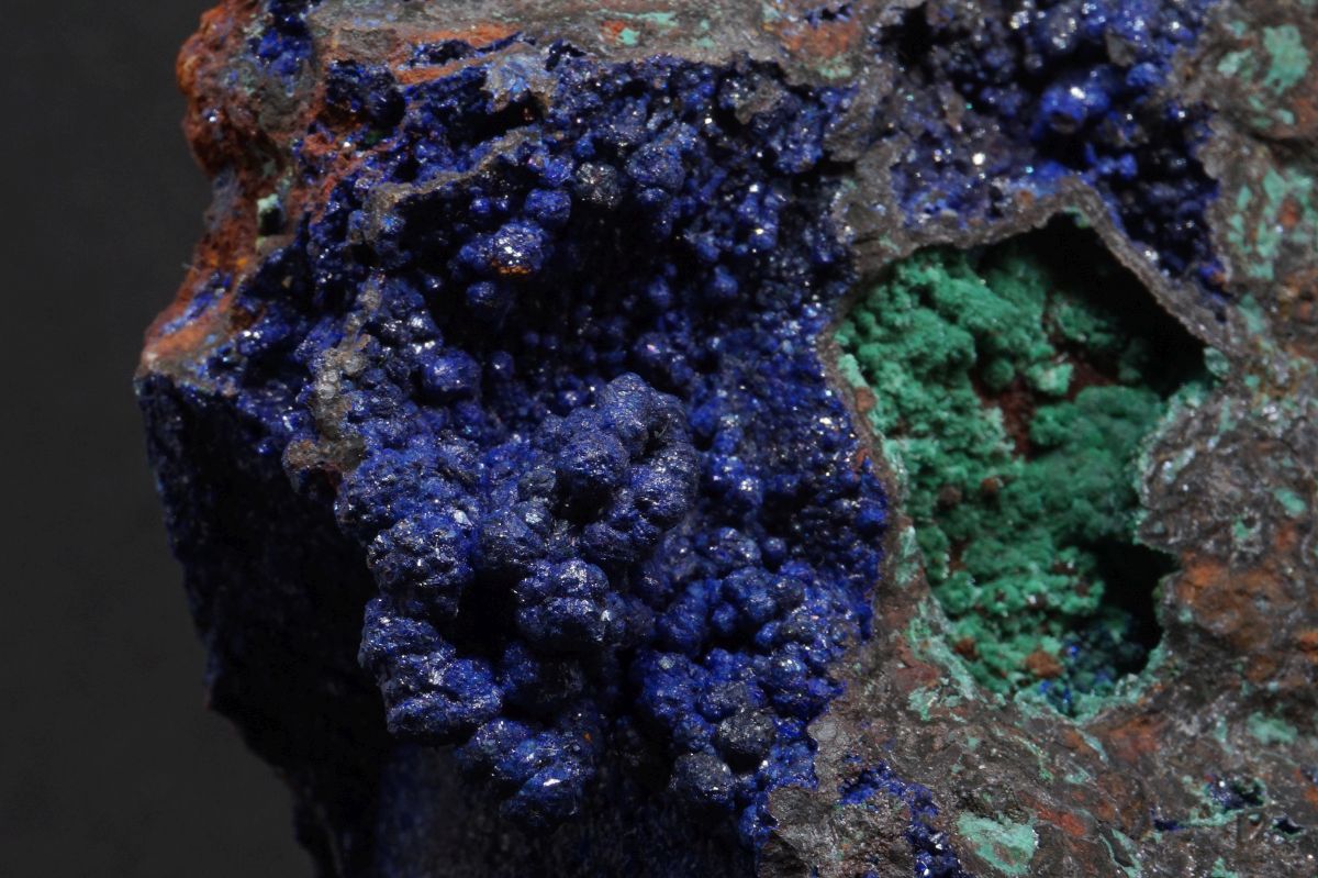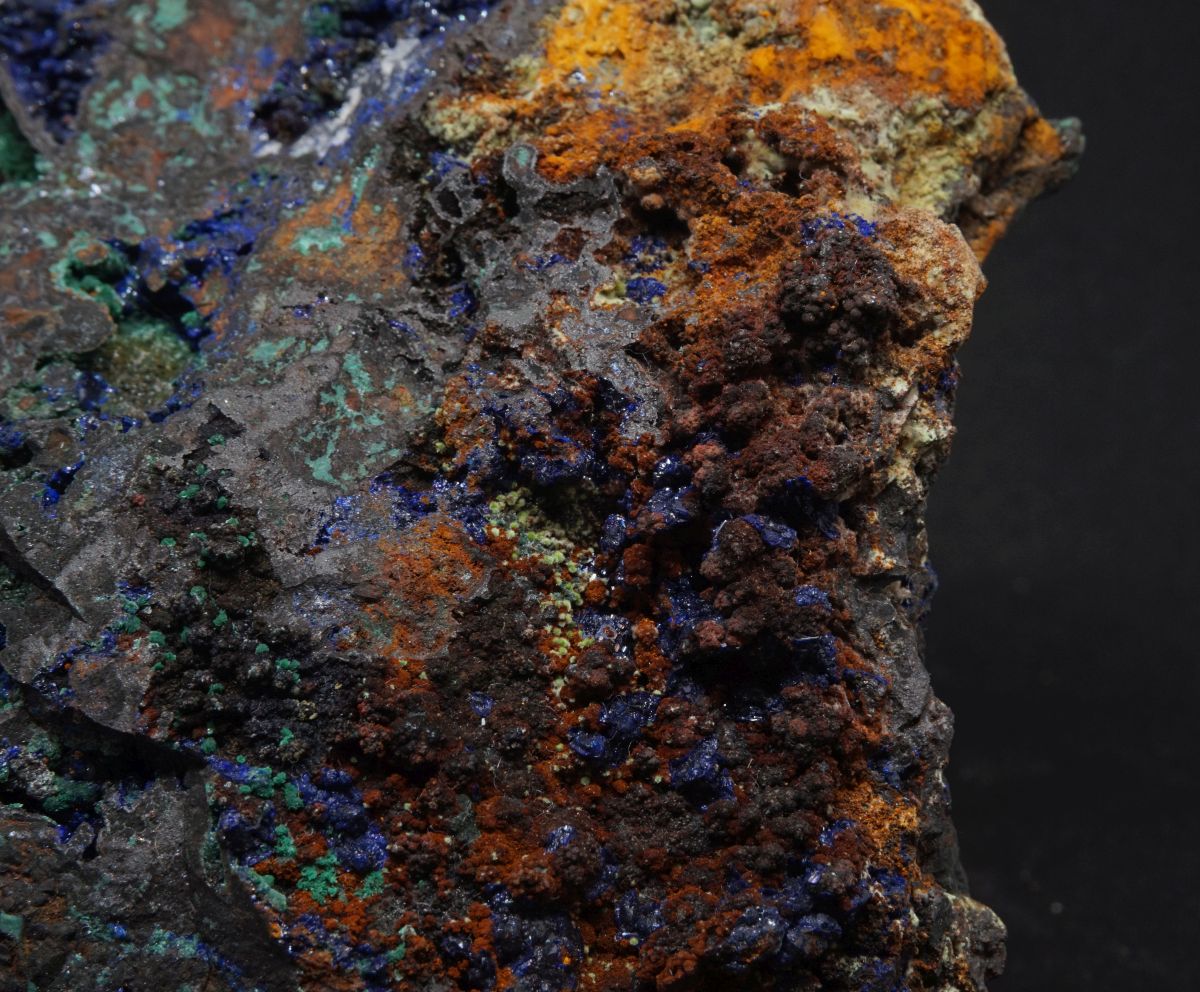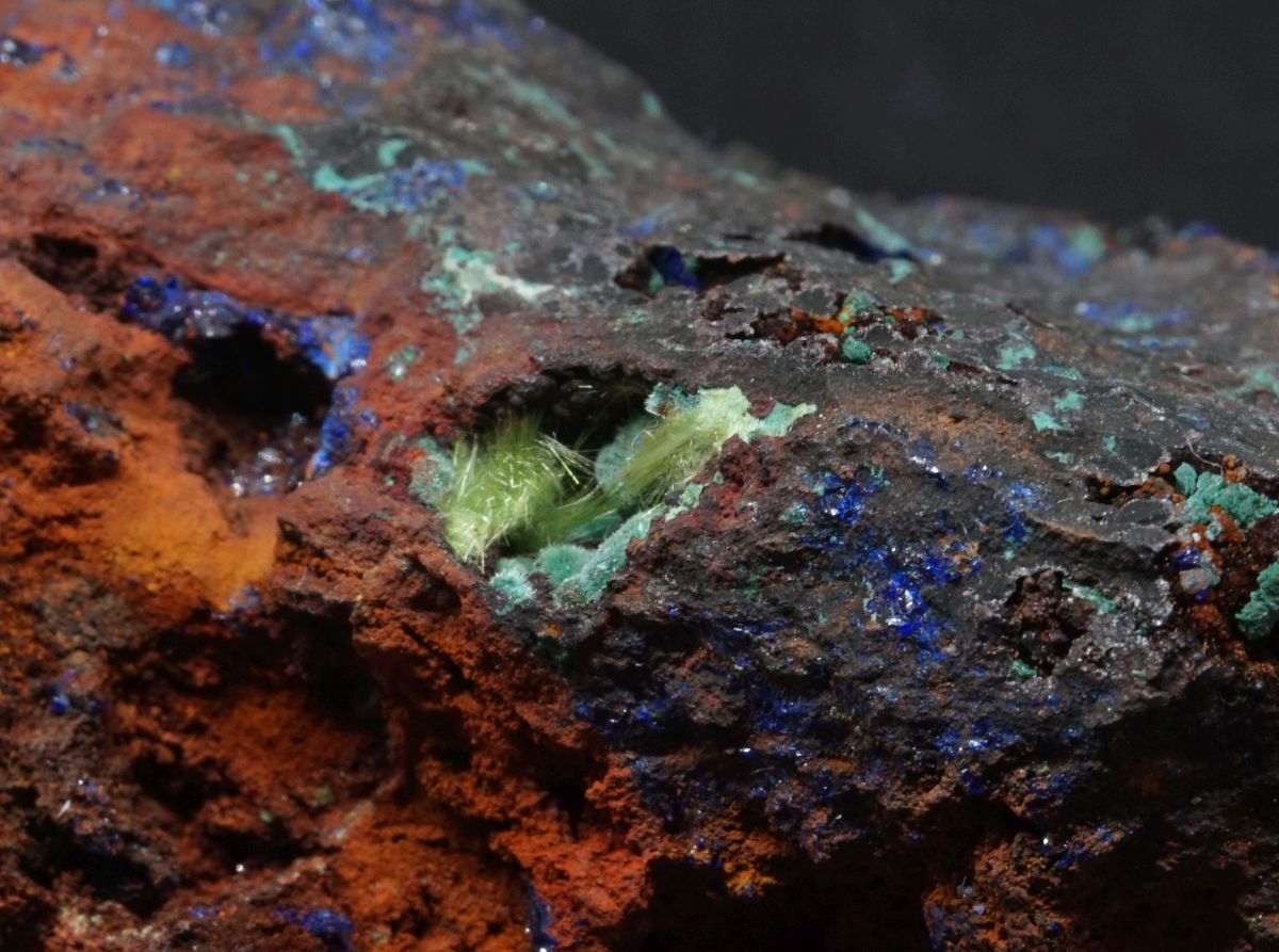 Azurit und Malachit mit Olivenit | Laurion, Griechenland