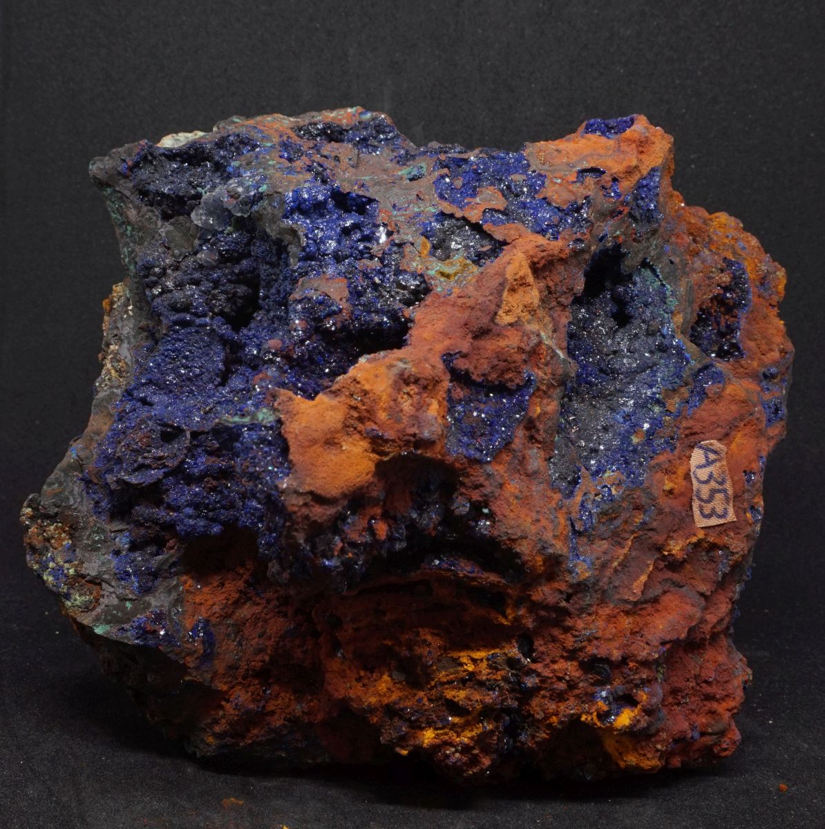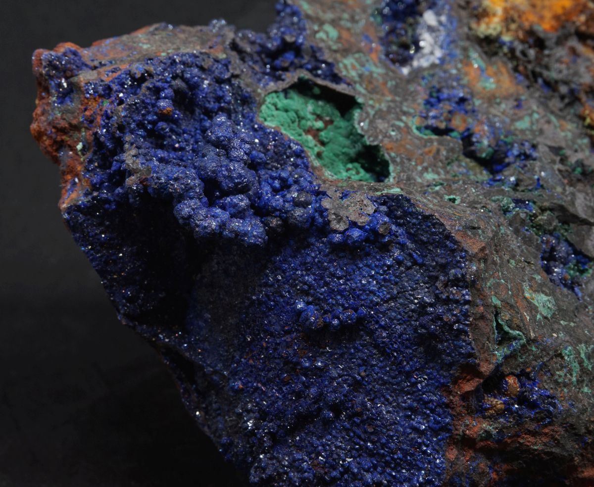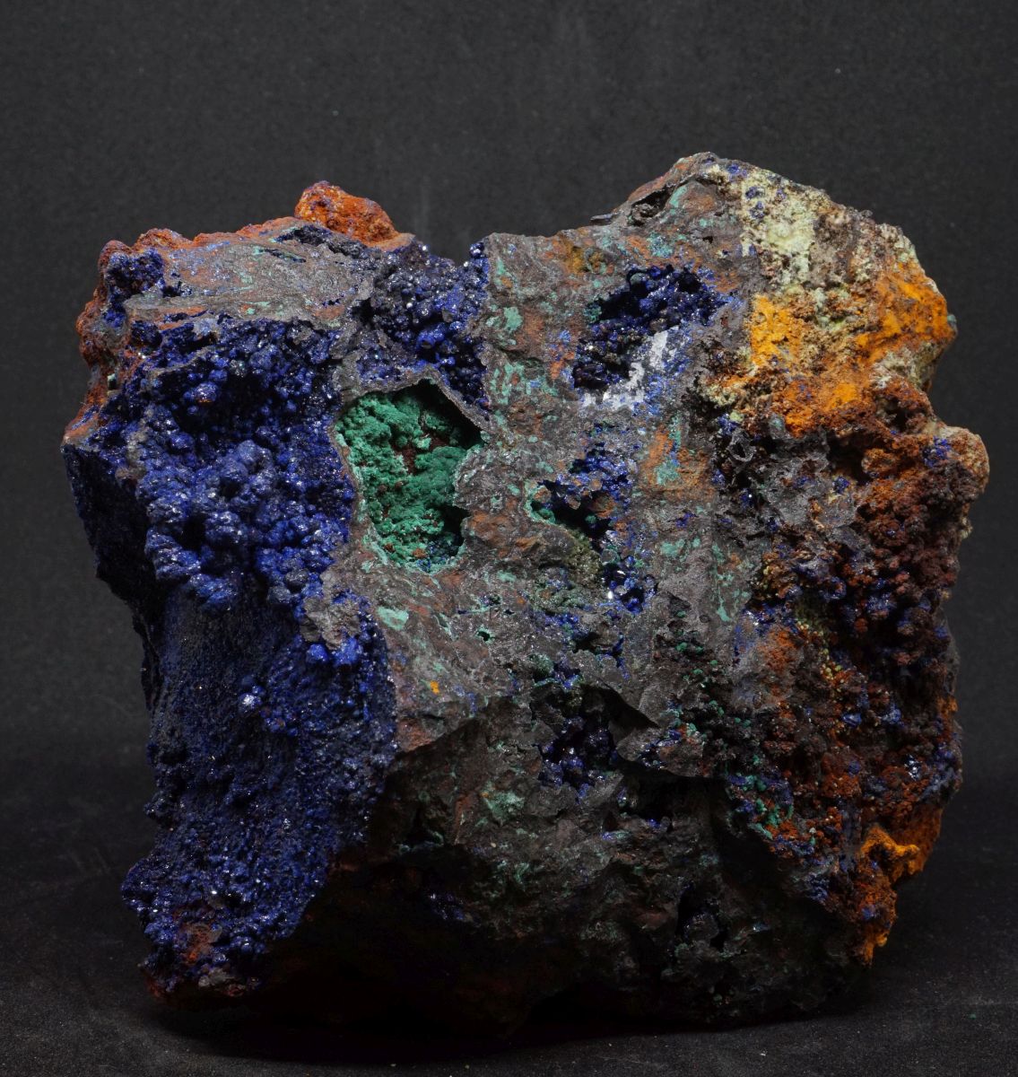 Eindrucksvolle Stufe mit drei verschiedenen Kupfermineralien aus Laurion in Griechenland.