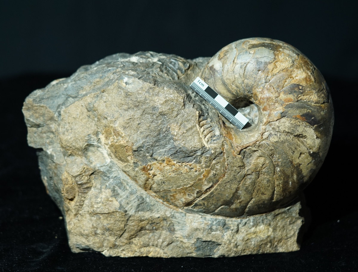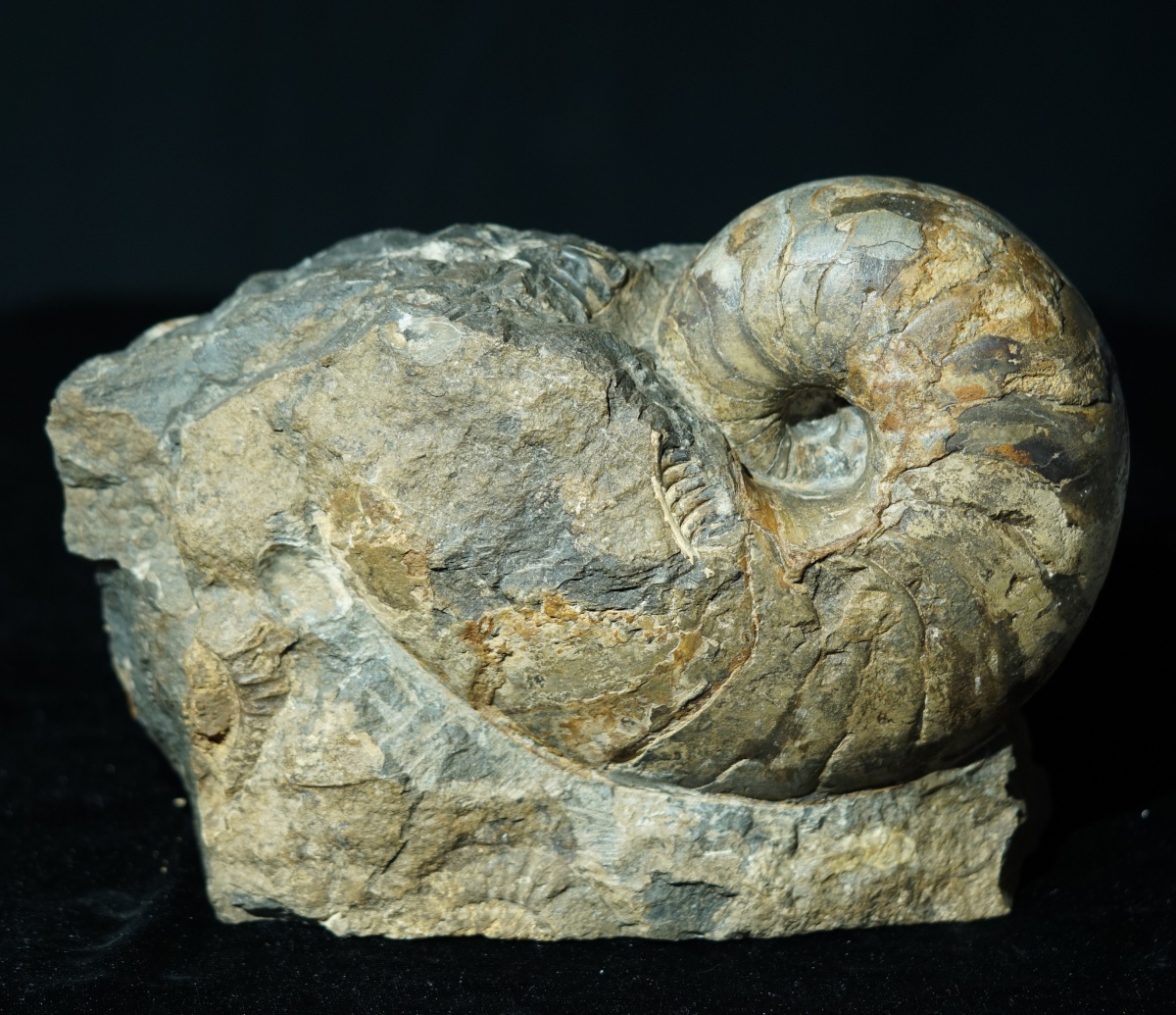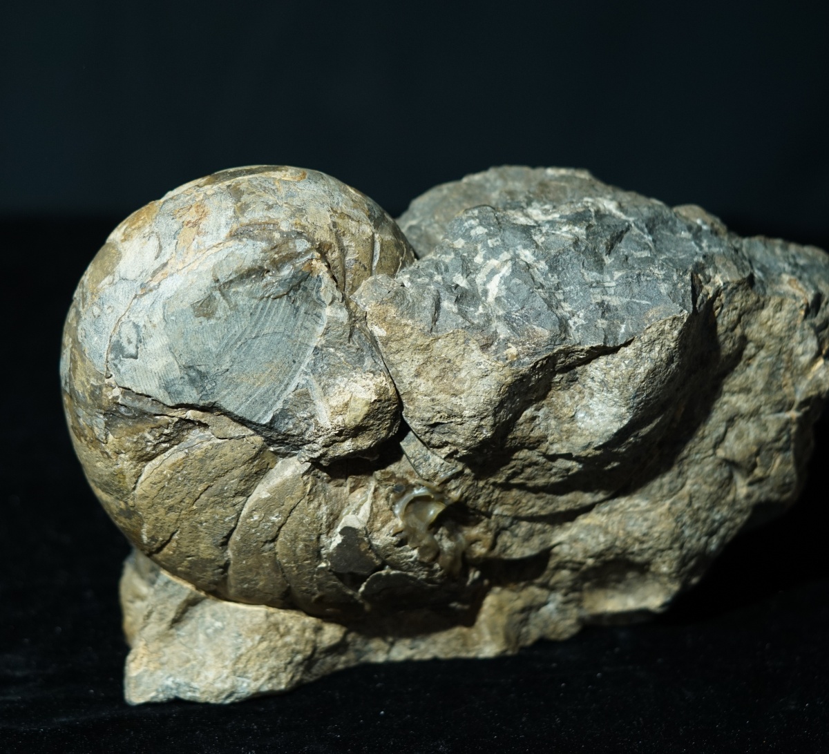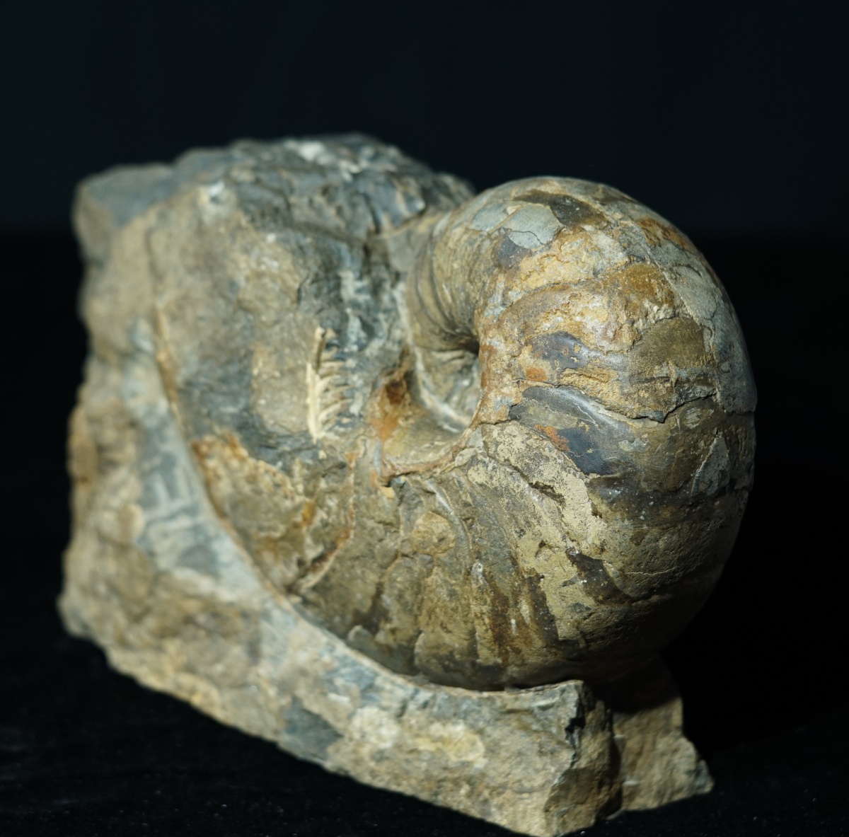 Ein außergewöhnlich schöner Nautilus aus dem unterjurassischen Arietenkalk von Bisingen. Die Stufe besitzt eine gesägte Standfläche zur optimalen Präsentation.