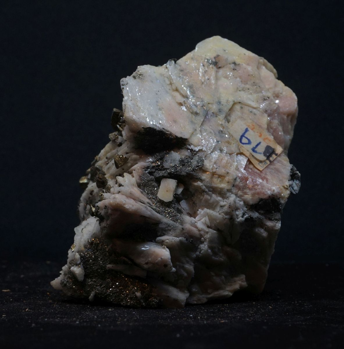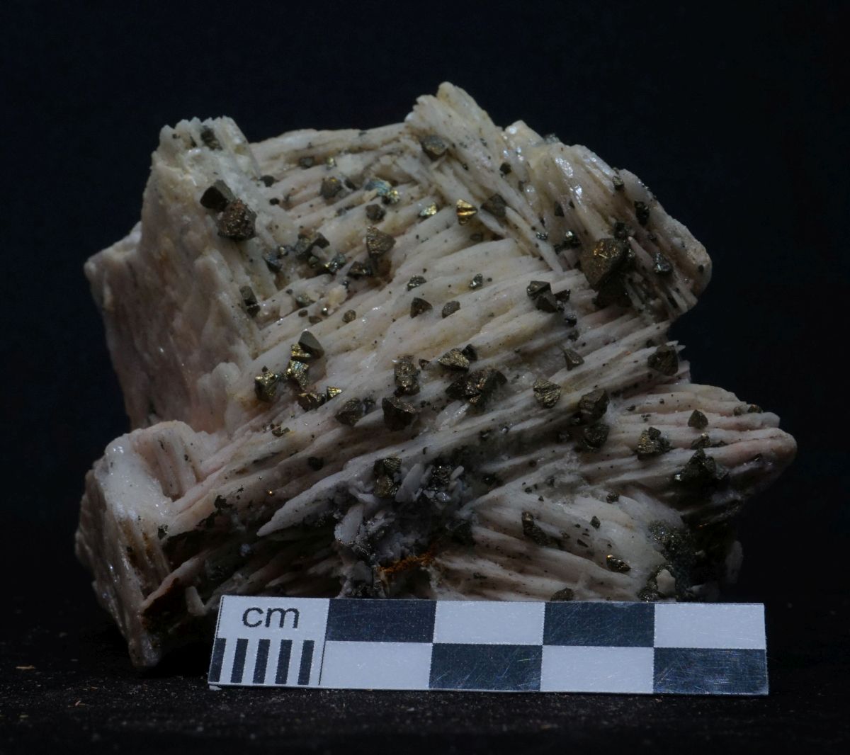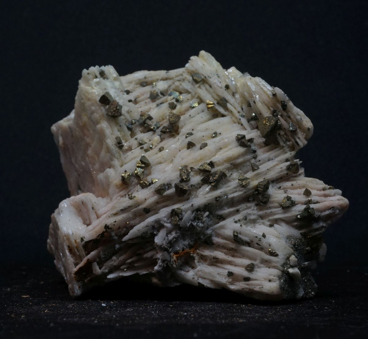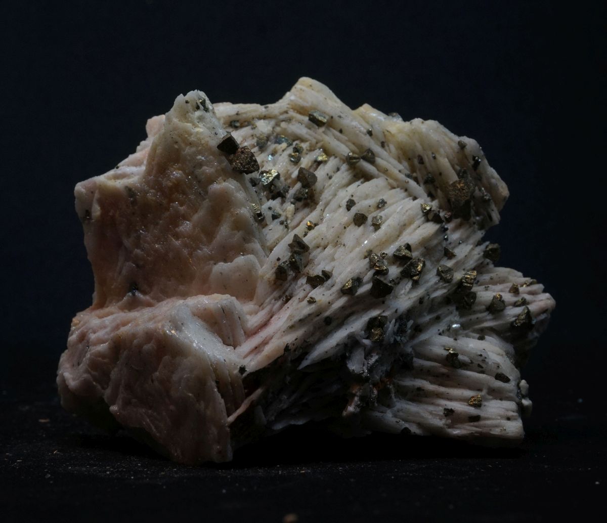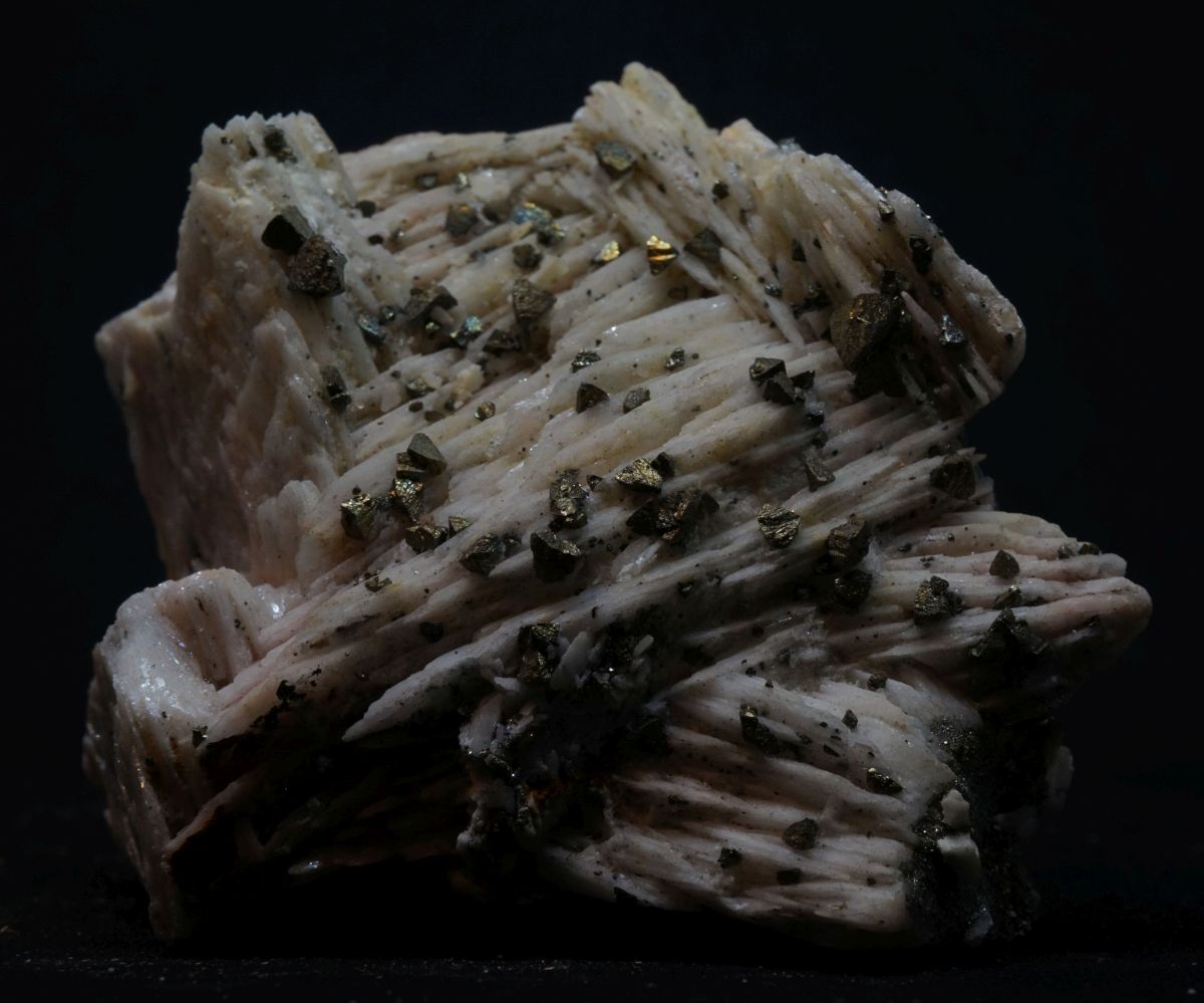 Klassische Kleinstufe aus Dreislar mit schönem Chalkopyrit auf Baryt.