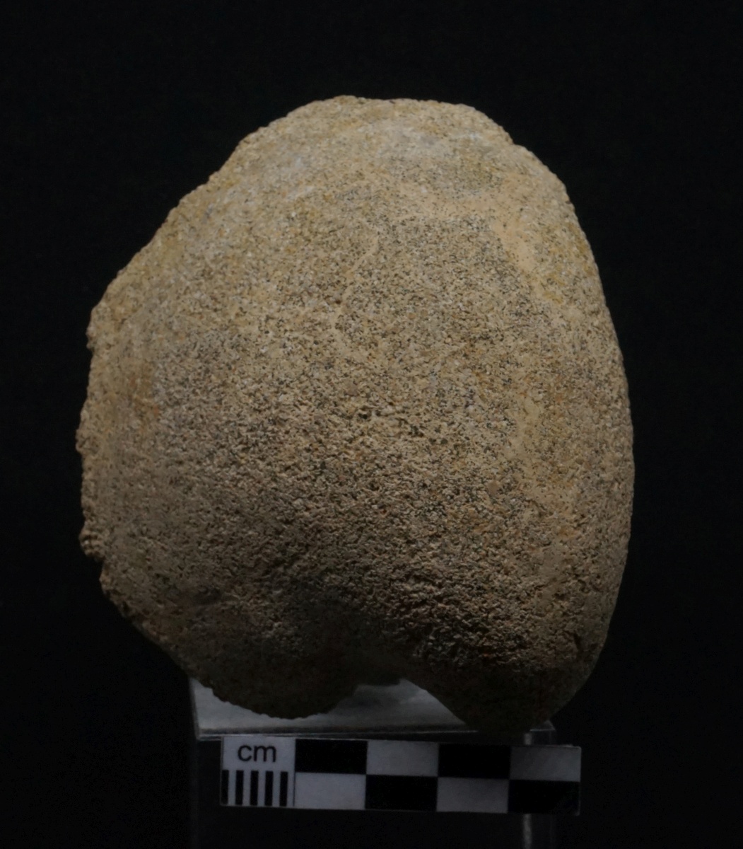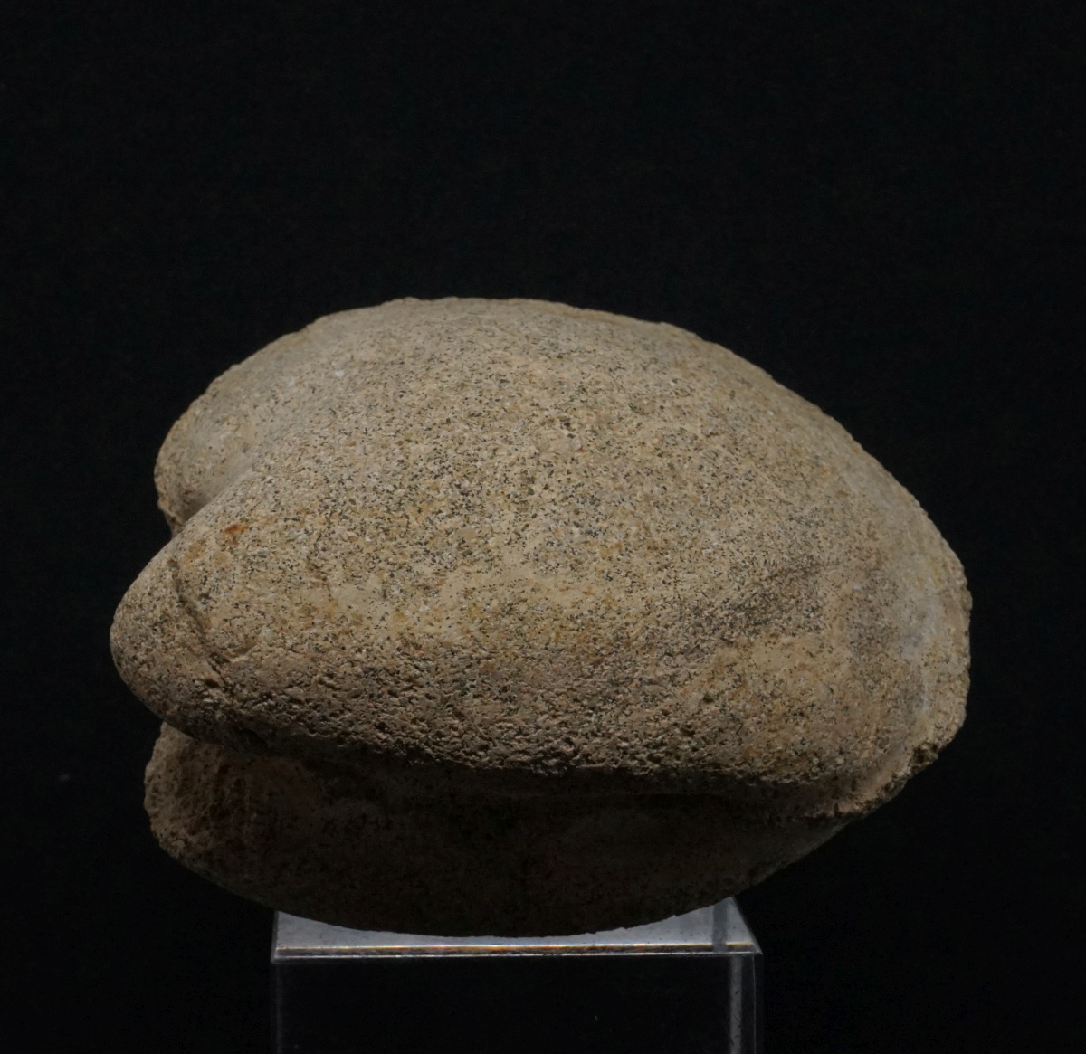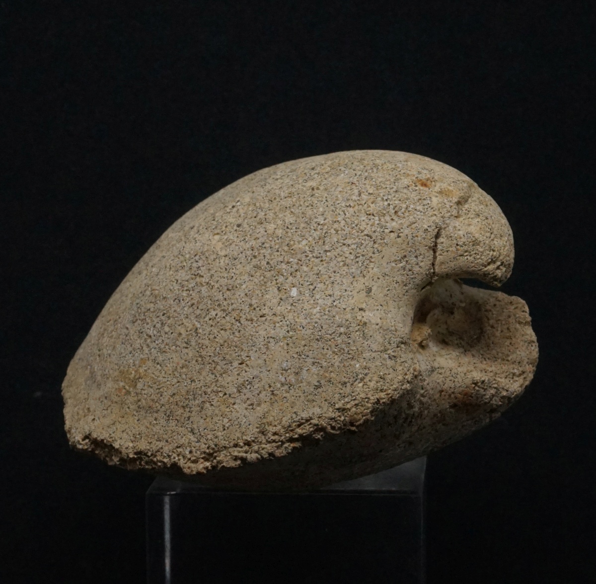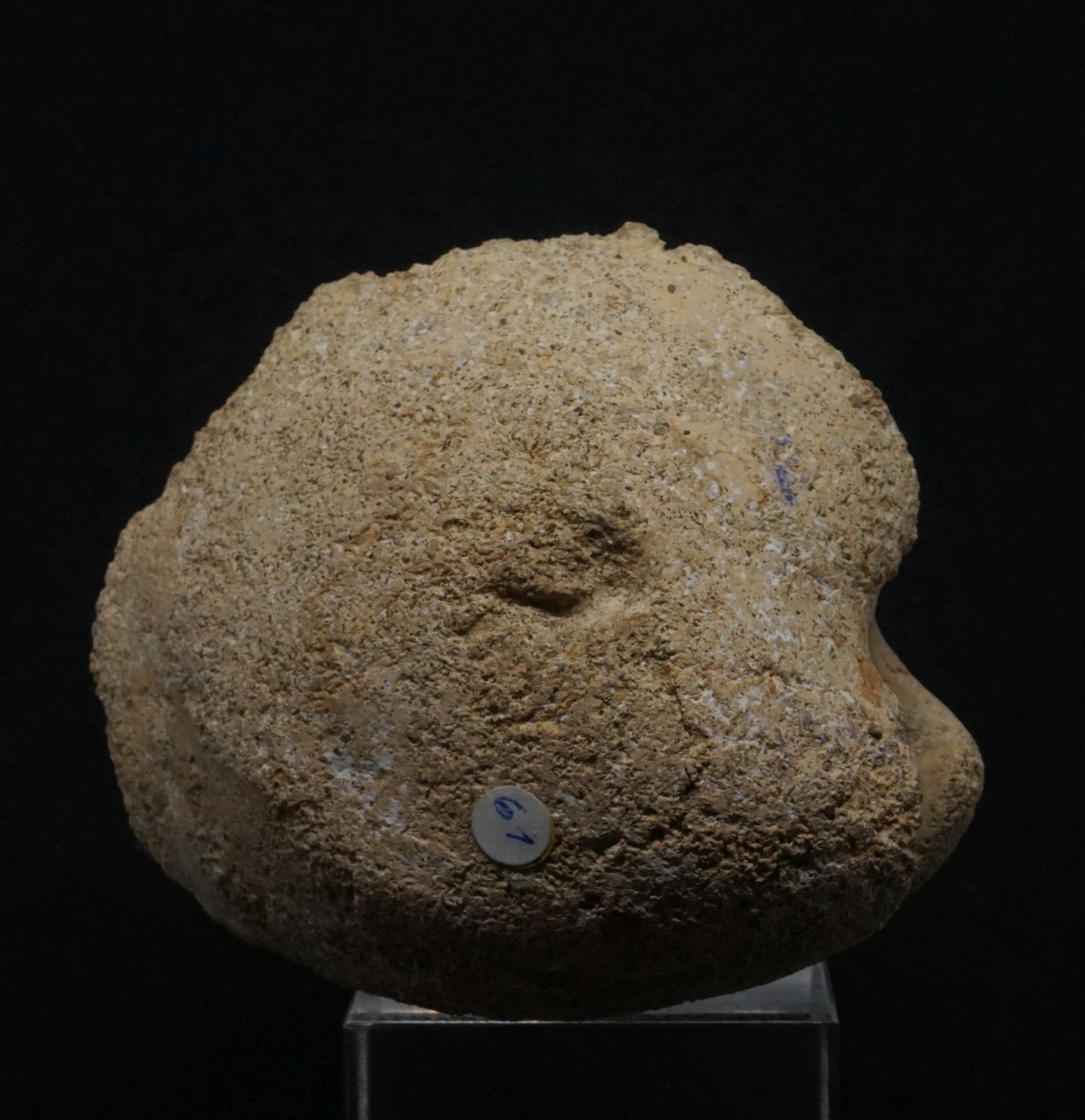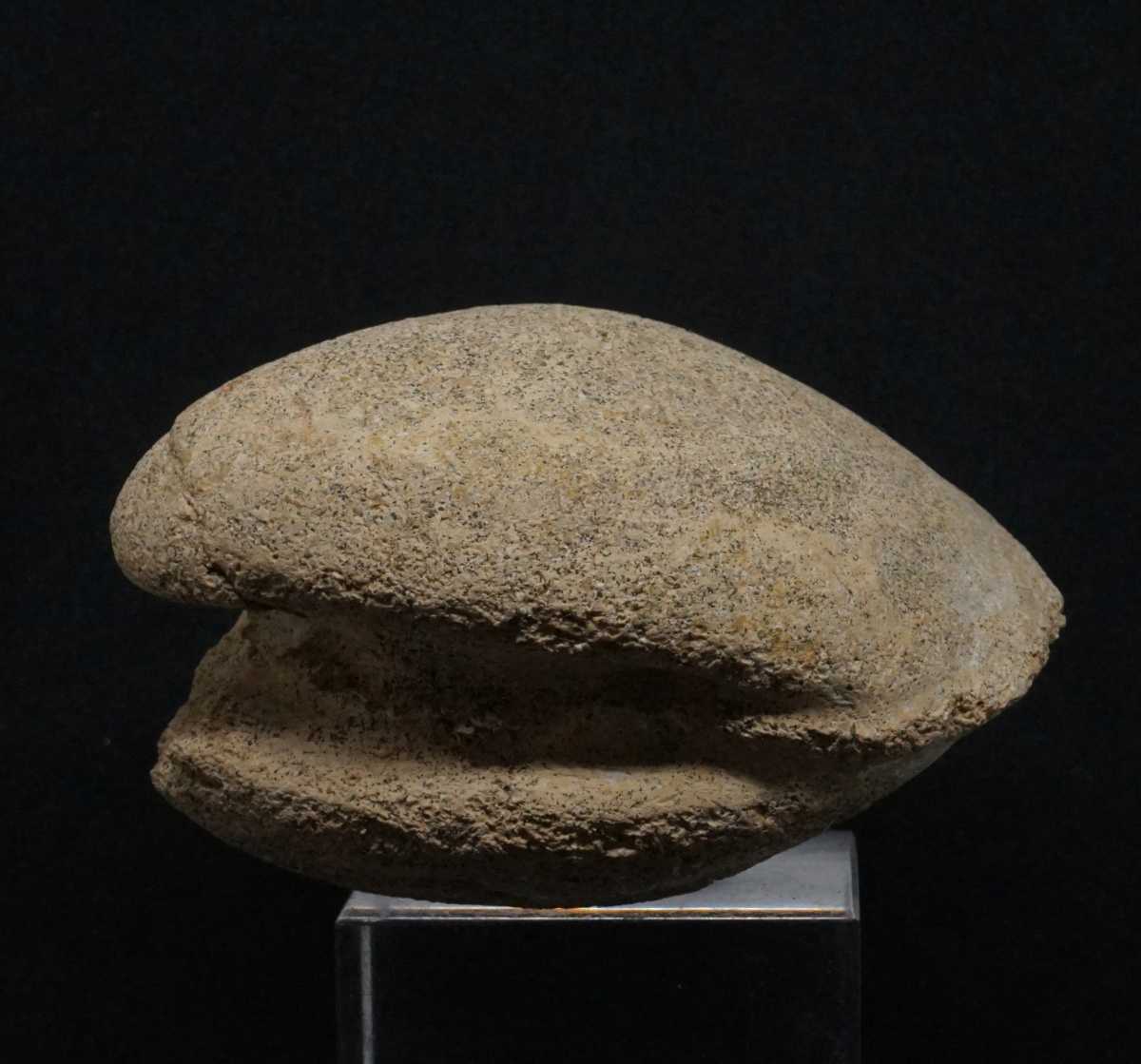 Großer Steinkern einer Muschel aus dem Oligozän der lang erloschenen Fundstelle am Doberg bei Bünde. Das Stück stammt aus einer historischen Sammlung.
