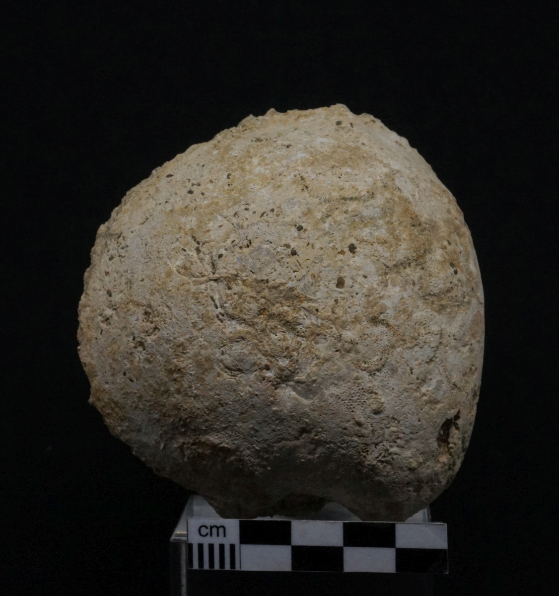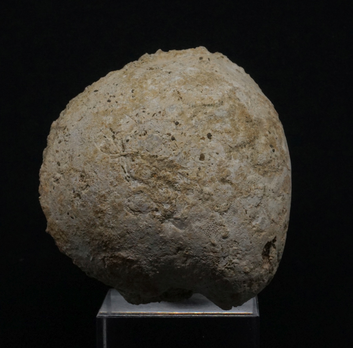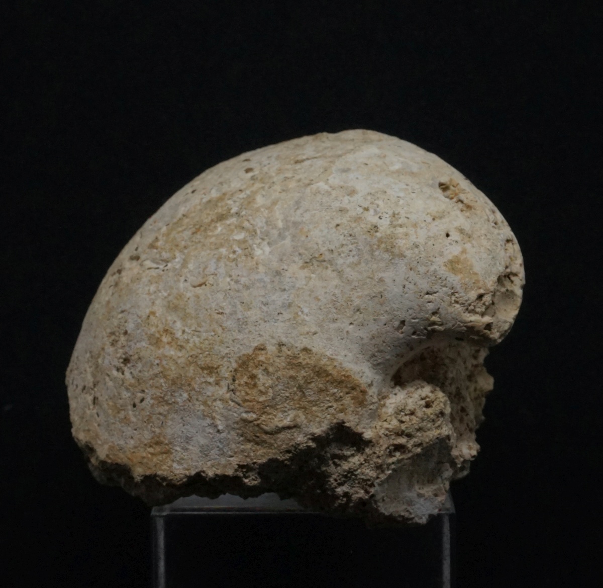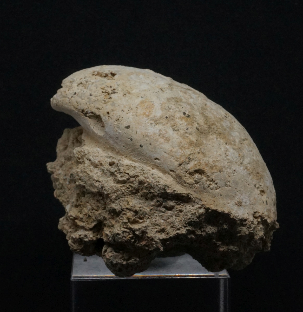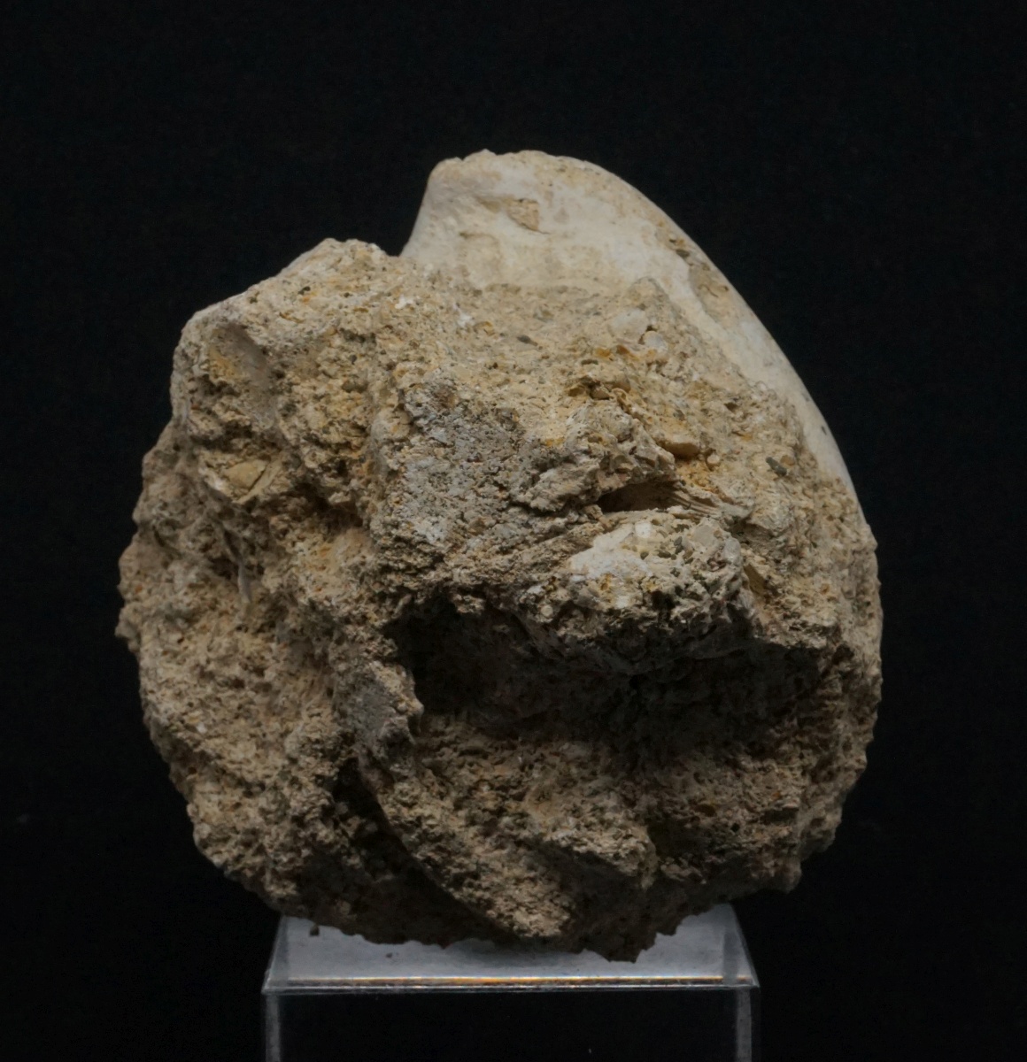 Großer Steinkern einer Muschel aus dem Oligozän der lang erloschenen Fundstelle am Doberg bei Bünde. Das Stück stammt aus einer historischen Sammlung.