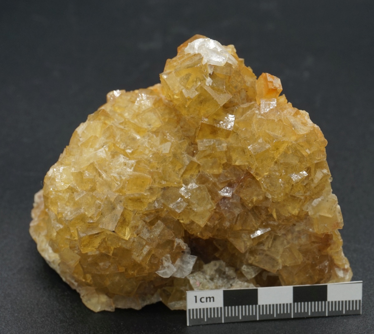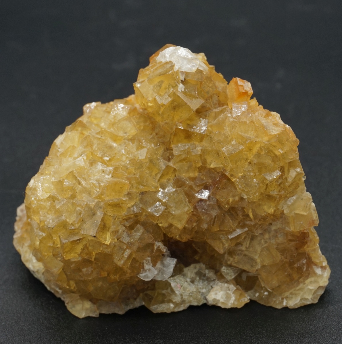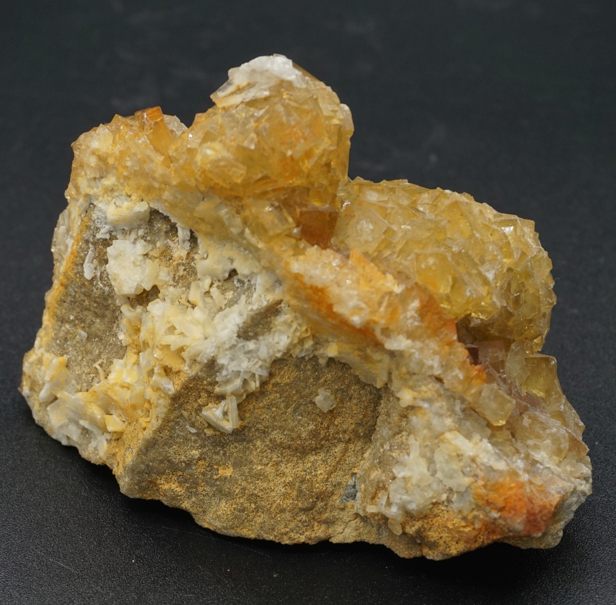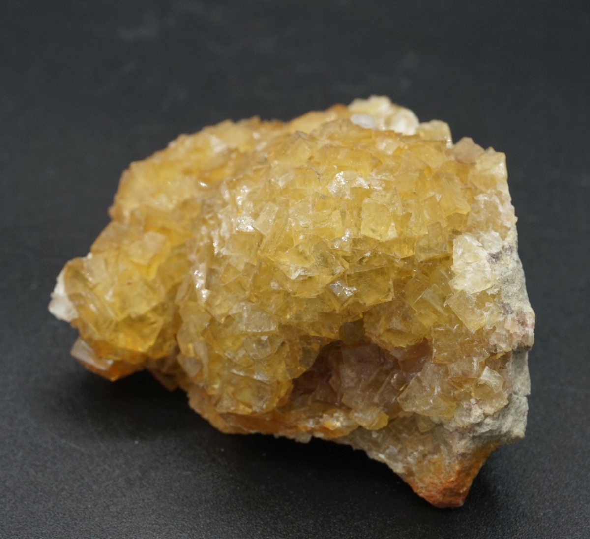 Eine super Stufe aus honiggelben Fluoritwürfeln auf Matrix aus dem Bergbaurevier Aouli bei Midelt in Marokko.