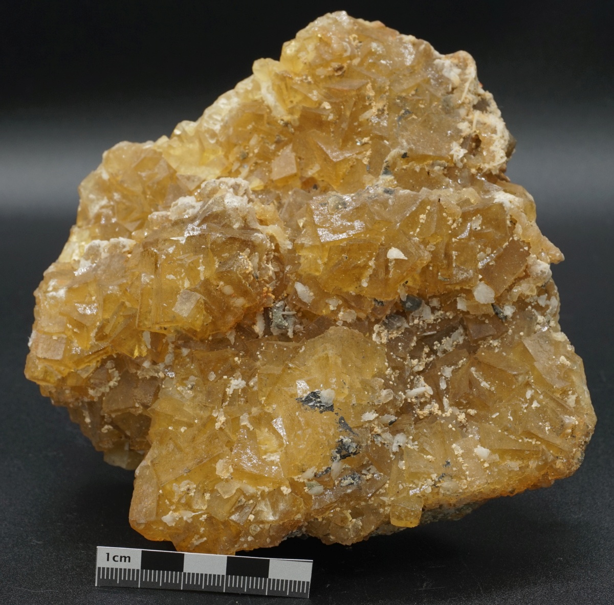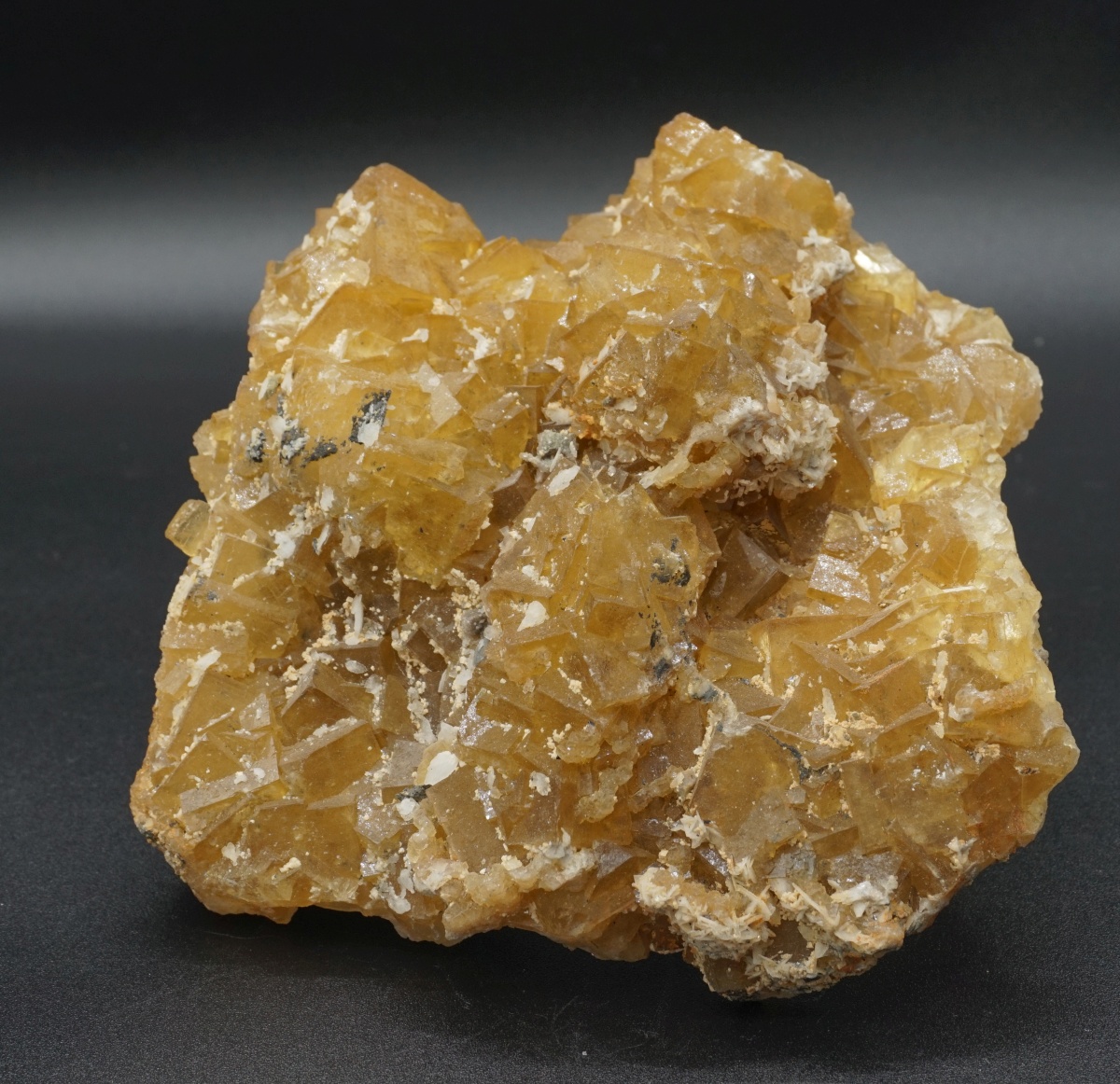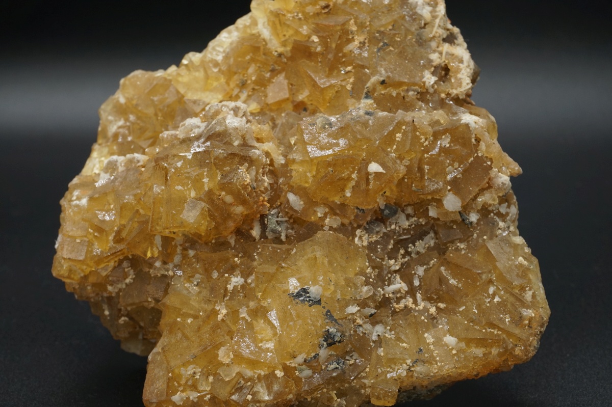 Eine schöne Stufe aus honiggelben Fluoritwürfeln auf Matrix aus dem Bergbaurevier Aouli bei Midelt in Marokko.