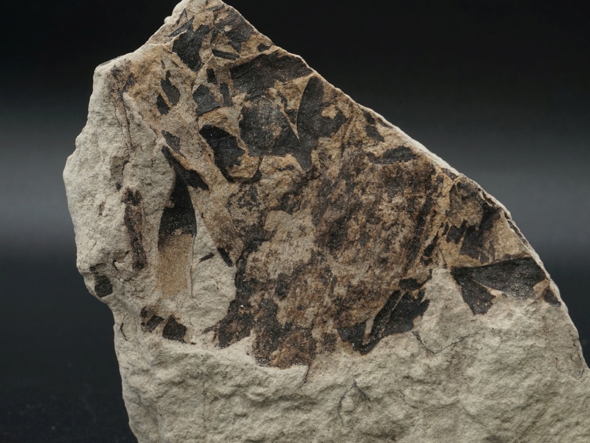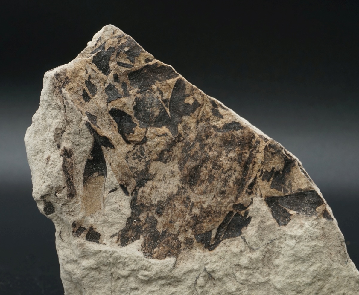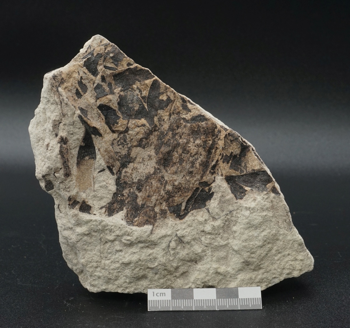 Ein super Belegstück von Gingkoblättern aus dem Mittleren Jura. Der Gingko gilt als lebendes Fossil, da er seit der Zeit der Dinosaurier bis heute überlebt hat.