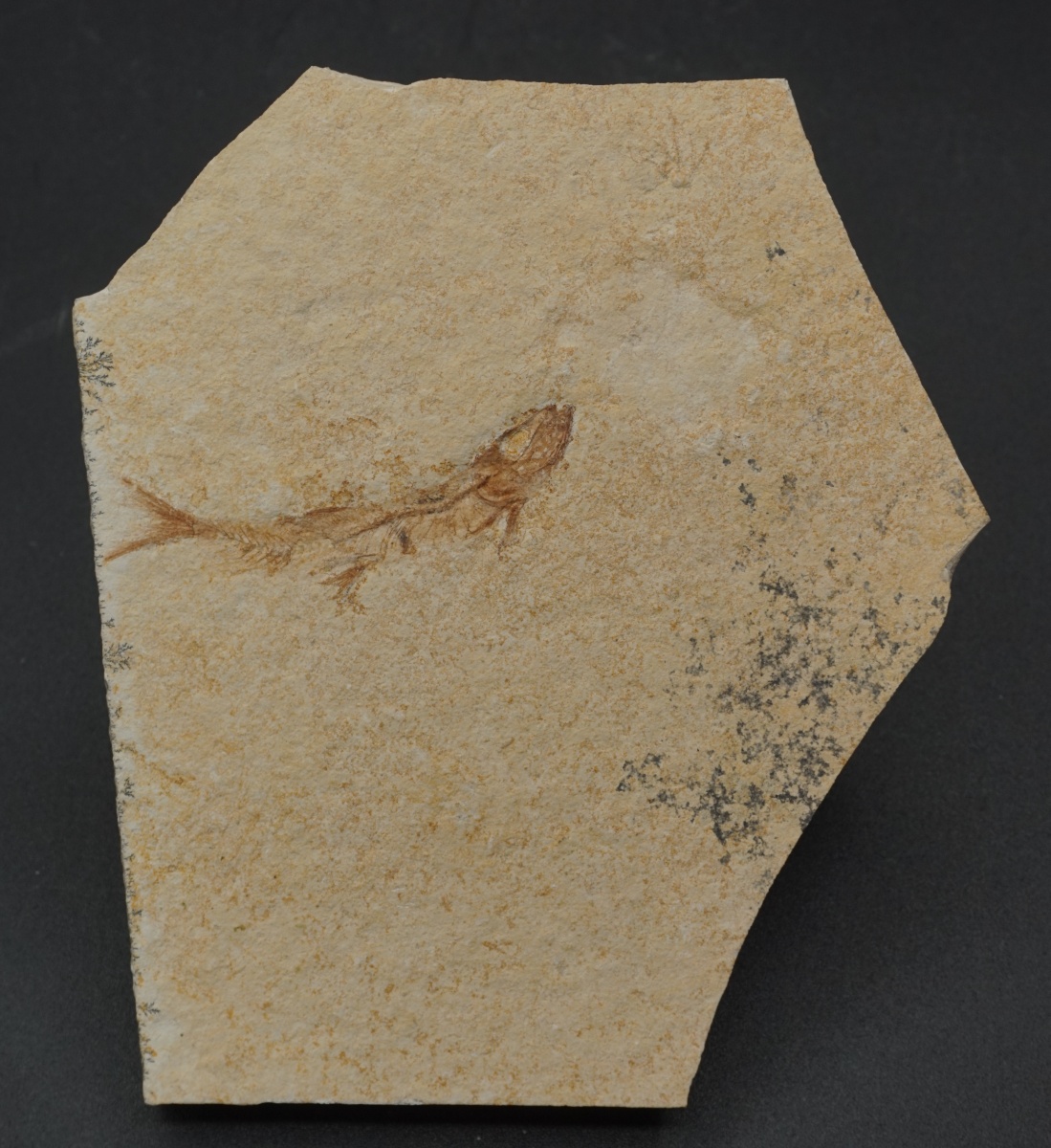 Ein außergewöhnlich gut erhaltenes Exemplar des Knochenfisches Leptolepides aus dem Solnhofener Plattenkalk.