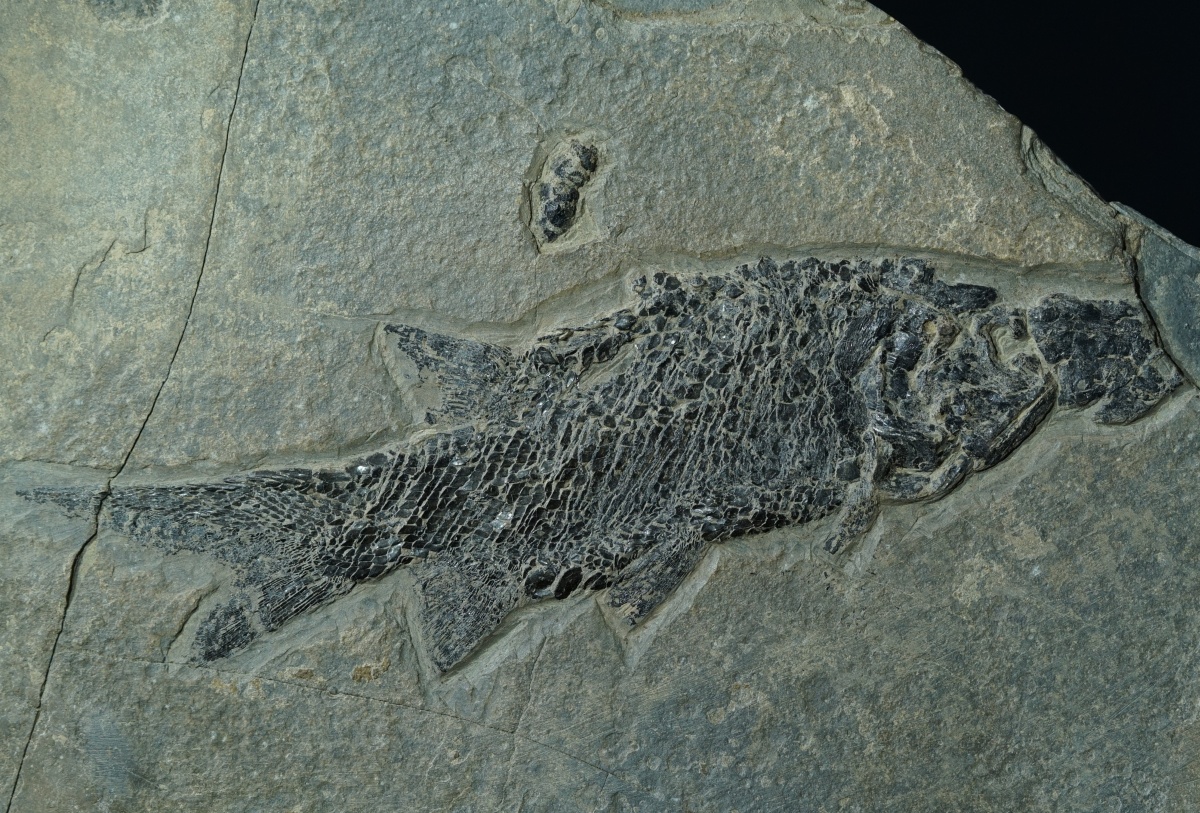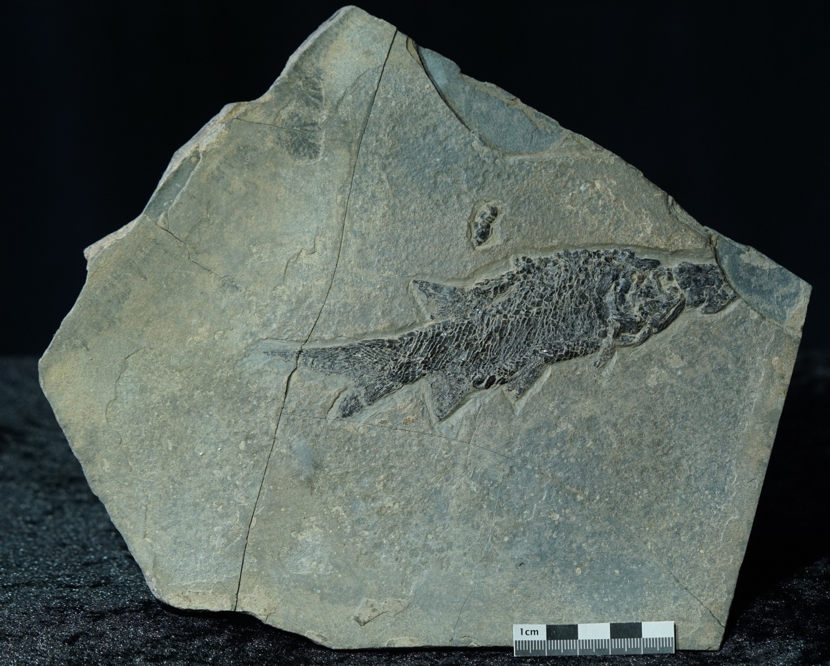 Ein hervorragend erhaltener Schmelzschuppenfisch aus dem Unterperm von Jeckenbach. Das Stück stammt aus einer alten Sammlung.