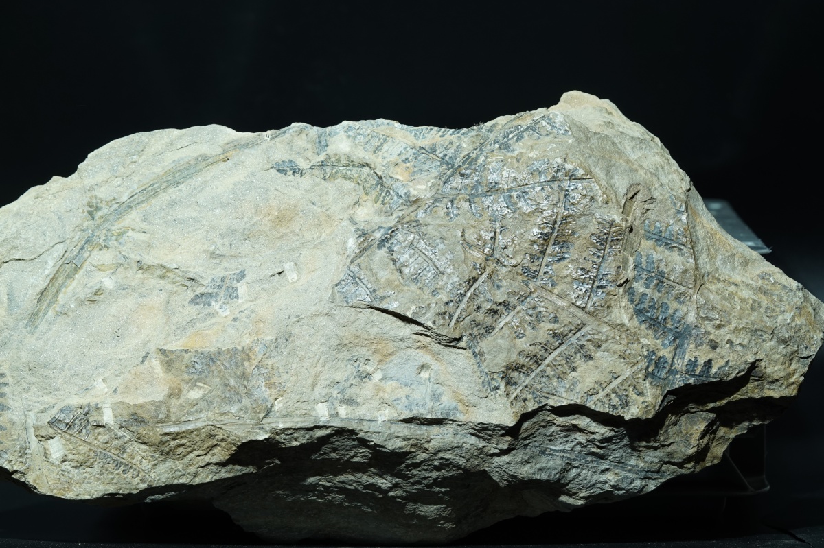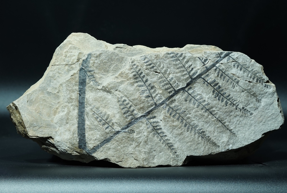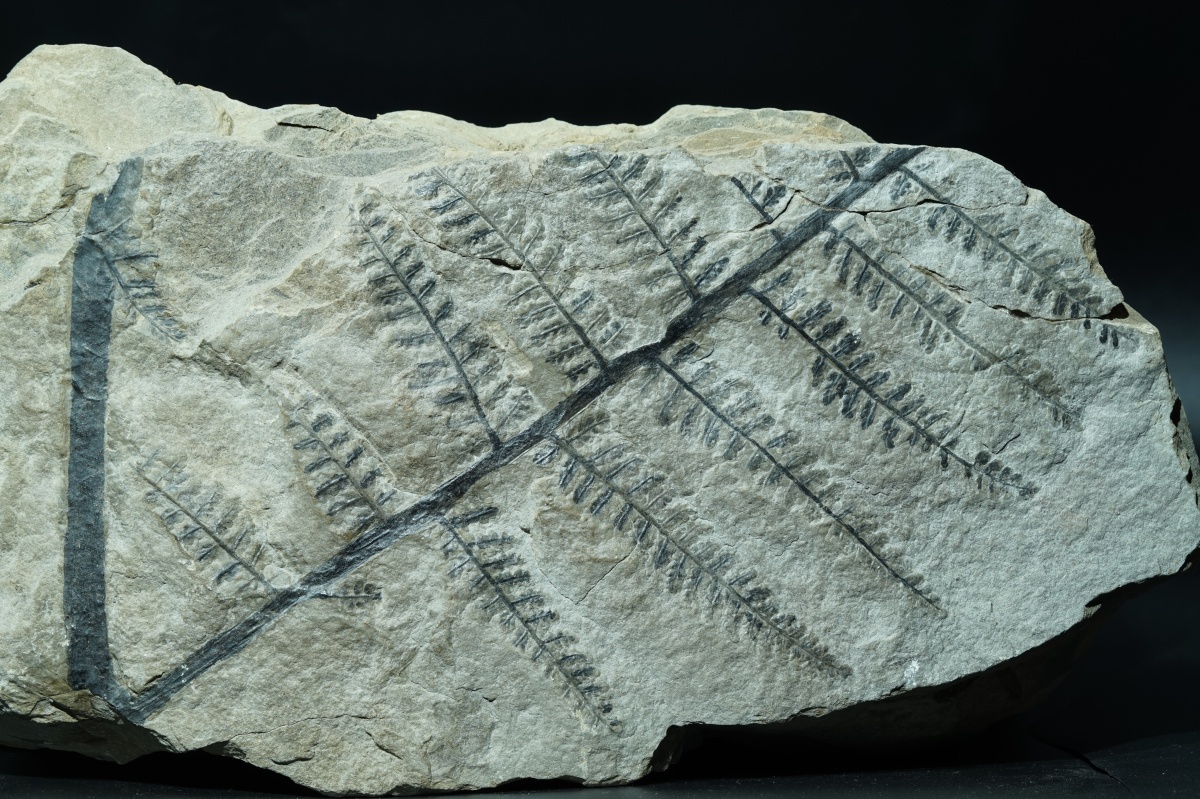 Ein außergewöhnlich großer und dekorativer Farnwedel aus dem unteren Perm von Wiesweiler.