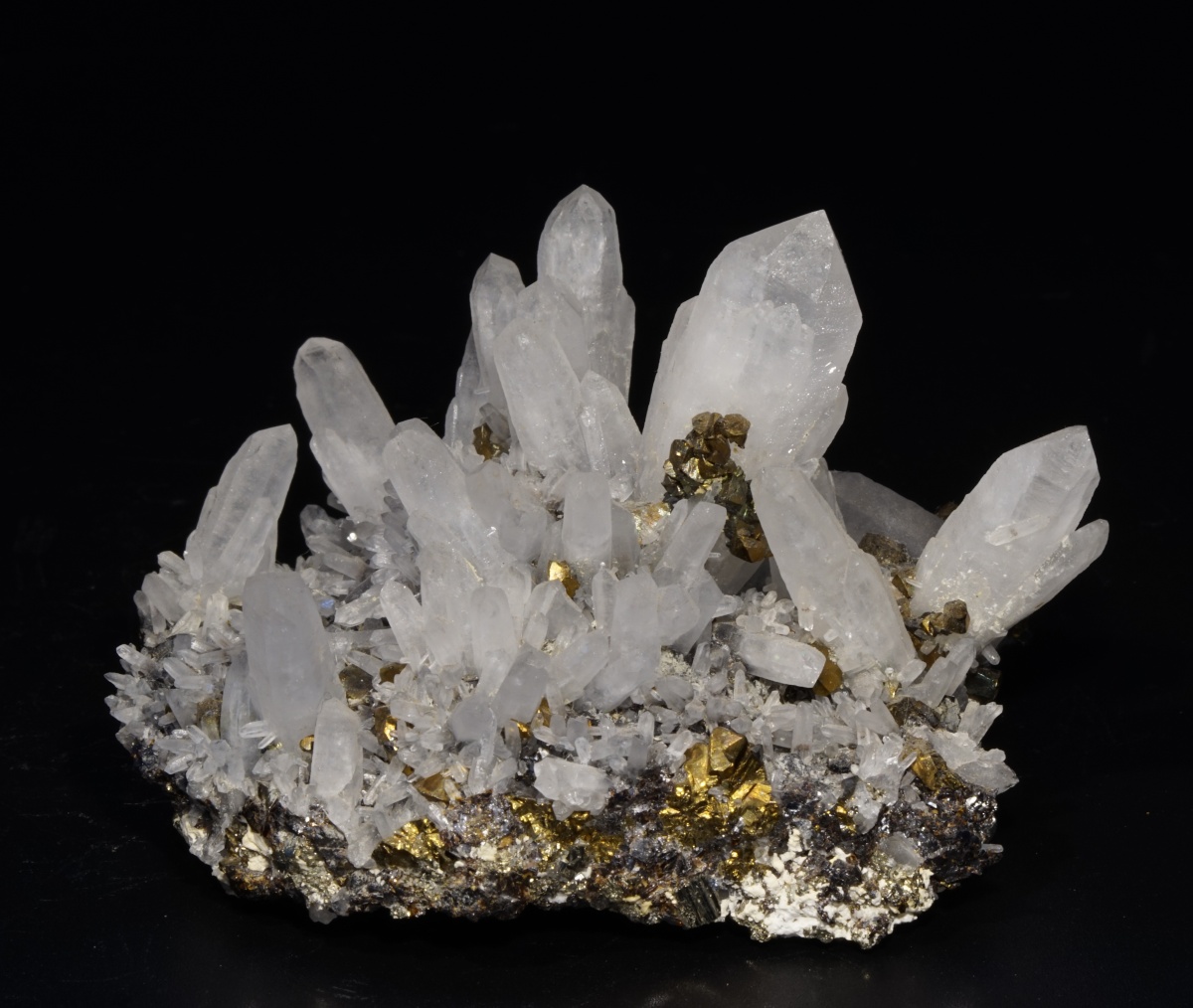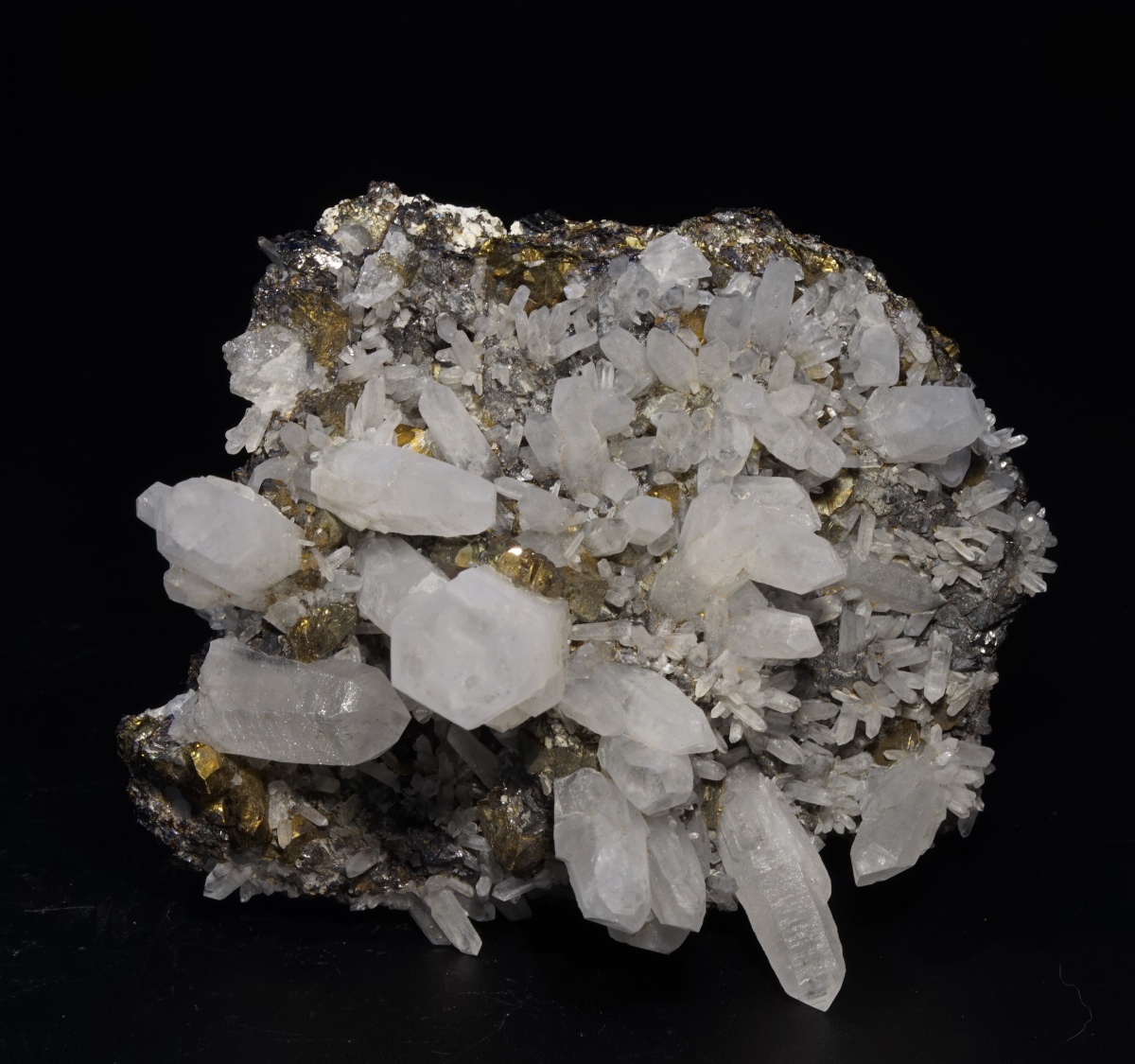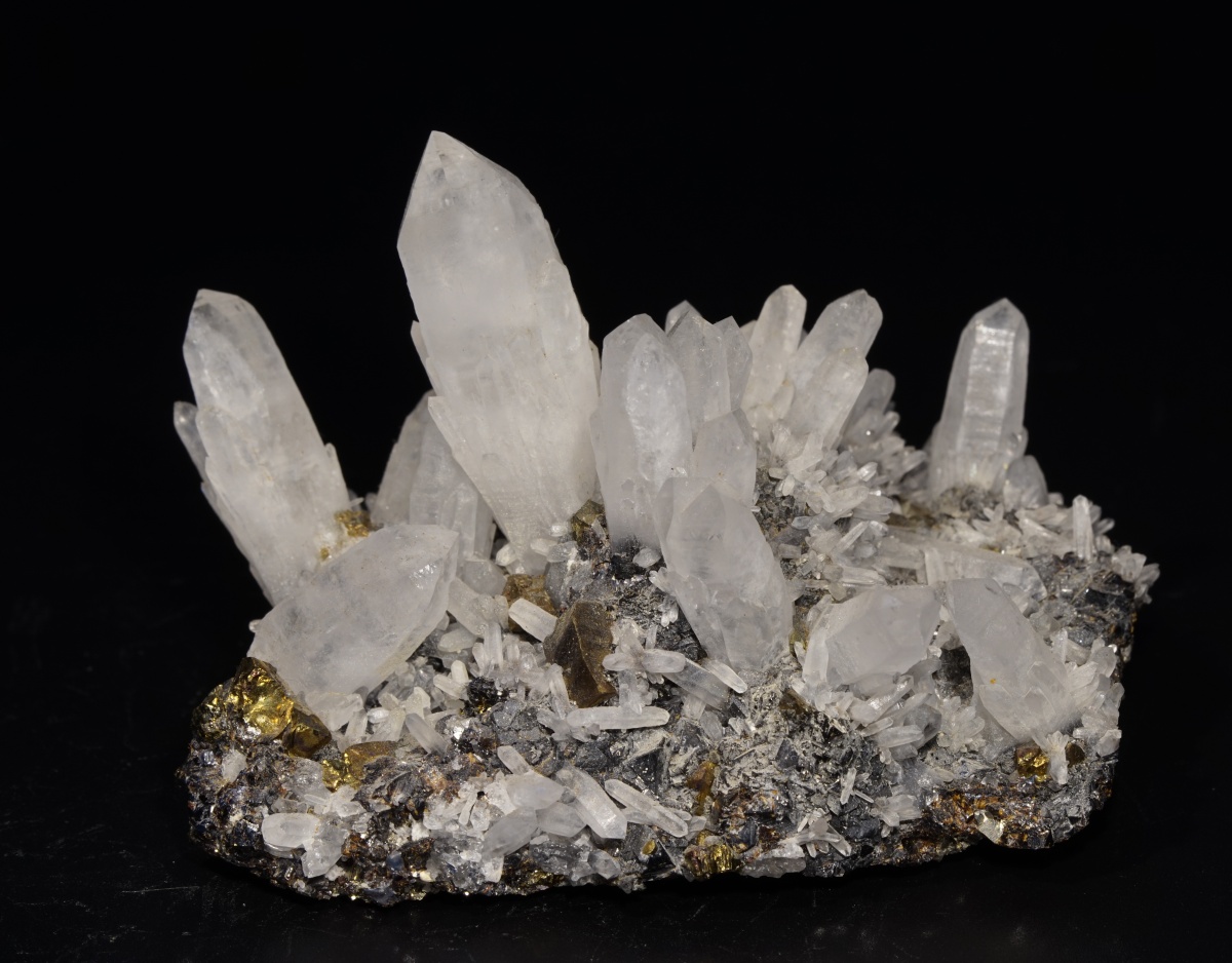 Eine tolle Stufe mit Quarz auf einer Matrix aus Sphalerit und Chalkopyrit.