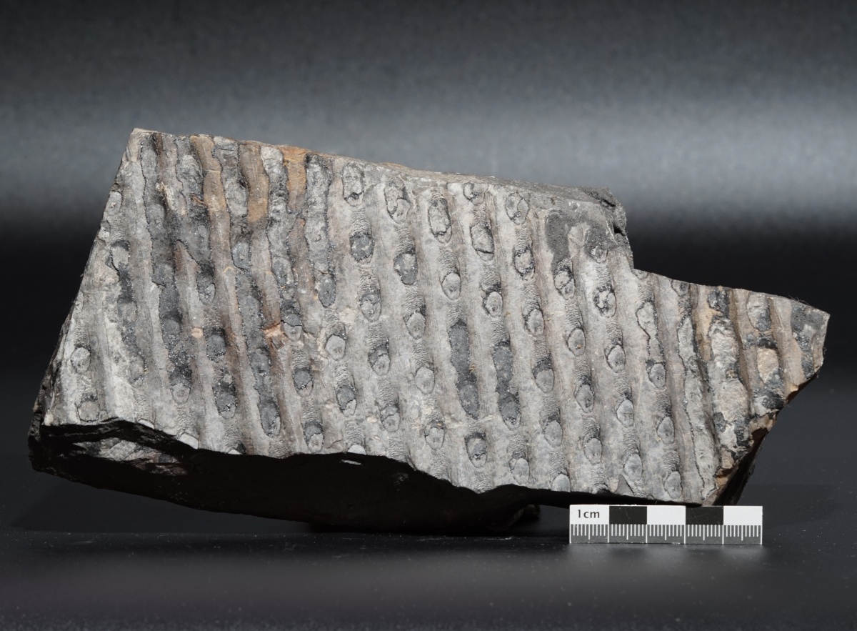 Eindrucksvolles Stück eines Siegelbaumes aus dem Karbon des Ruhrgebietes.