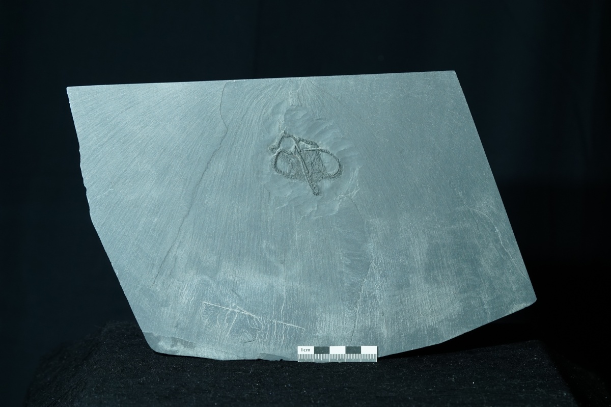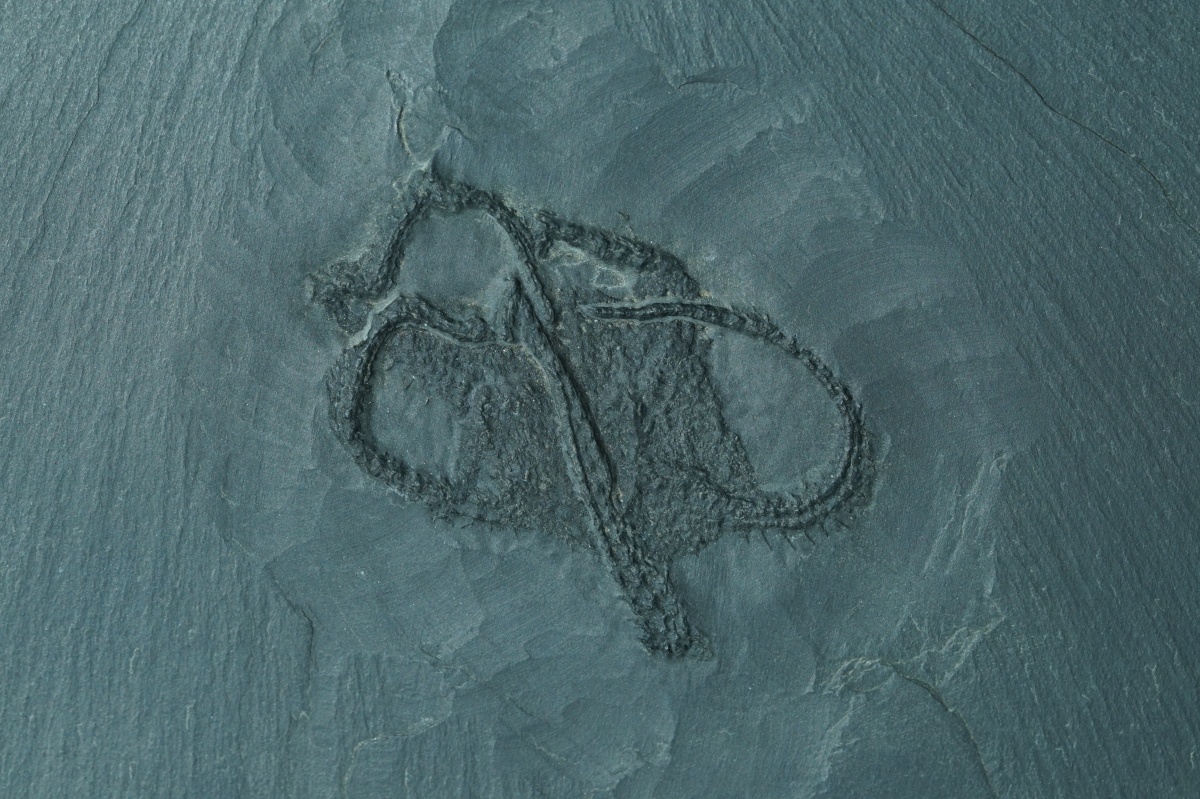 Ein gut erhaltener Schlangenstern aus dem unterdevonischen Hunsrückschiefer von Bundenbach.