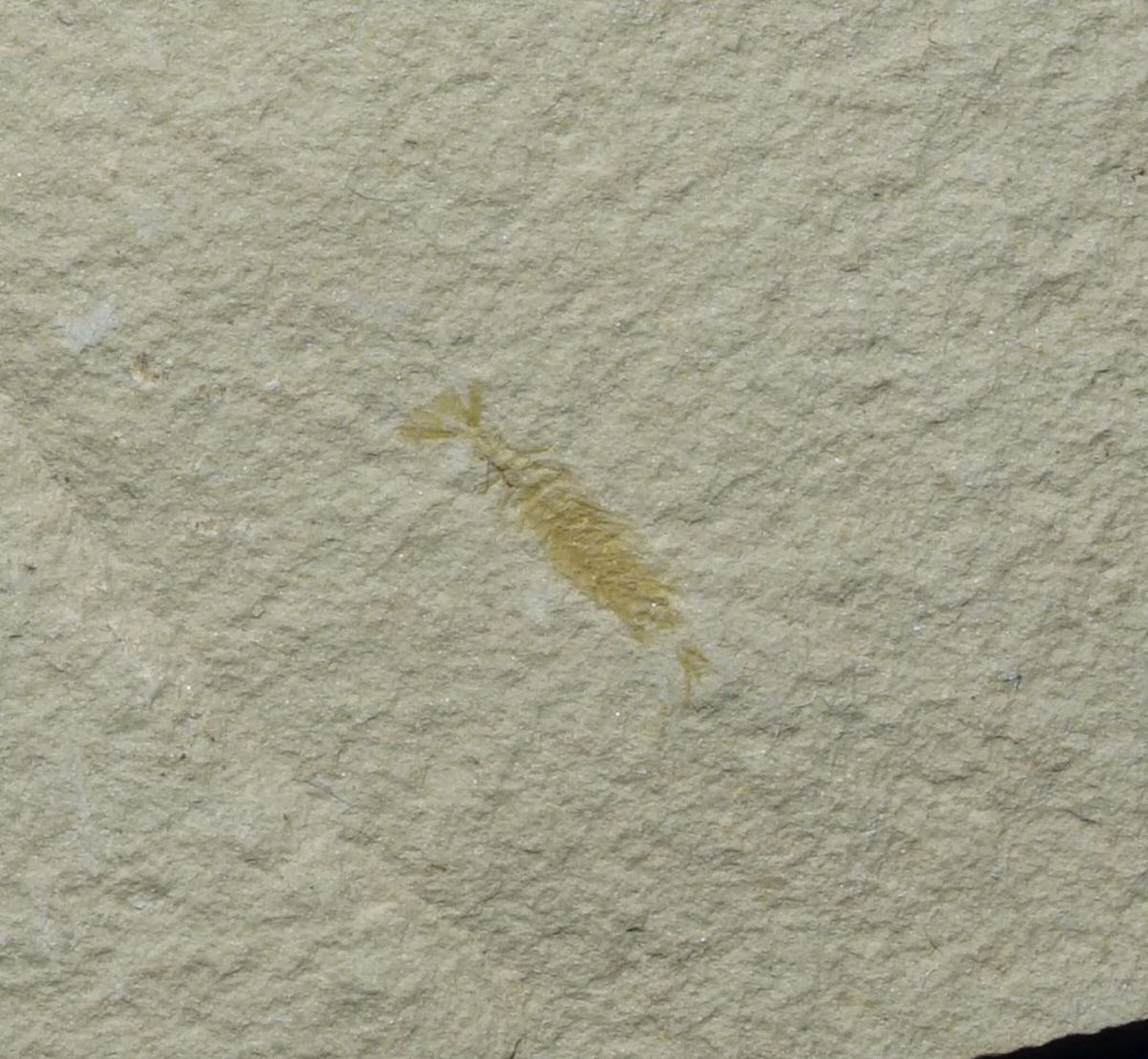 Eine kleine Platte mit drei sehr gut erhaltenen Krebsen aus dem Perm von Pfeffelbach. Die Seesedimente des Rotliegend sind bekannt für ihre reiche Fauna von Fischen und Amphibien. Die filigranen Krebse gehören zu den großen Raritäten. Aus einer alten Sammlung.