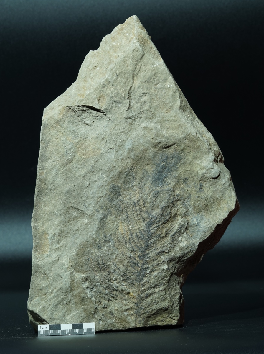 Ein Zweig des primitiven Nadelbaumes Walchia aus dem unteren Perm von Wiesweiler.